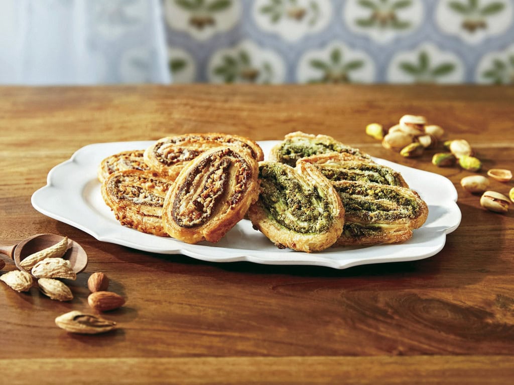 行列が絶えない木の実スイーツ専門店の一番人気は「ココリスパイ」。ジャンドゥーヤペーストをアーモンドダイスと一緒に巻き込んだ「ジャンドゥーヤパイ」と、ピスタチオのペースト+ピスタチオダイスの「ピスタチオパイ」は甲乙つけがたい組み合わせ。