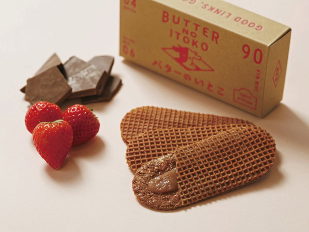 バターを作る際に生まれる無脂肪乳を利活用した「バターのいとこ」は、「ふわっ・シャリッ・とろっ」の独特な食感を楽しめるスイーツ。東京駅限定「いちごチョコ味」