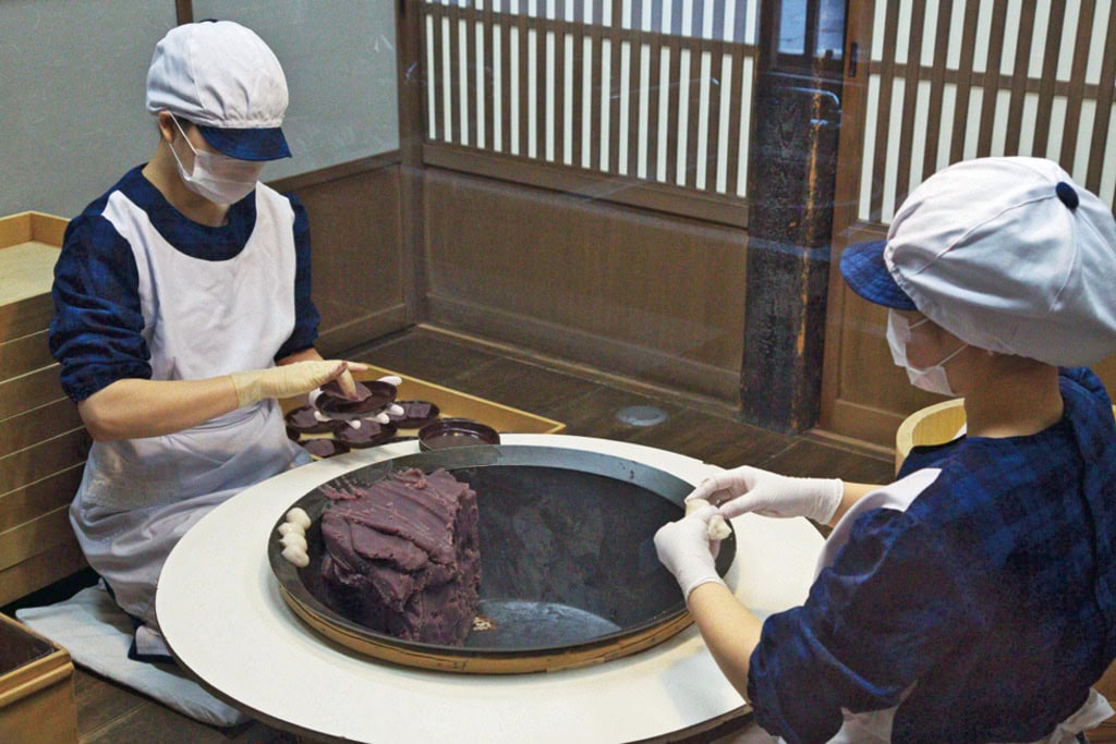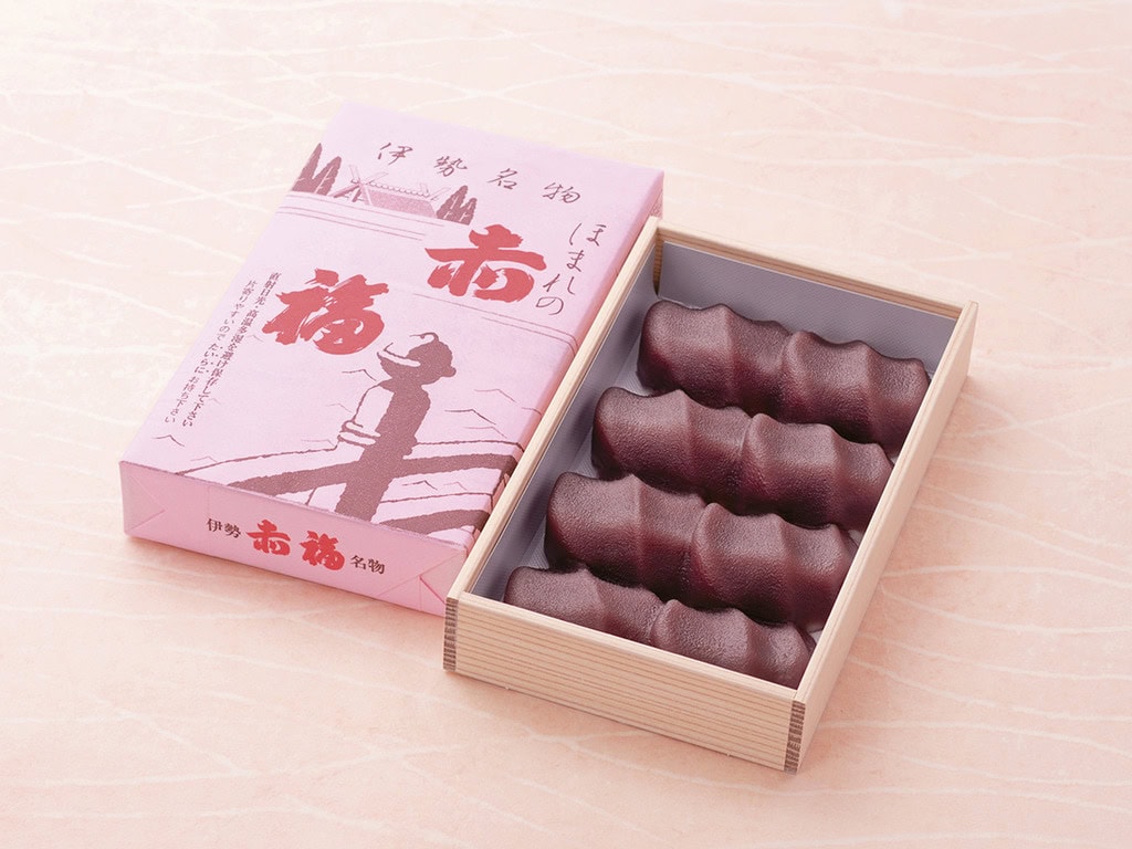 江戸時代からお伊勢参りの人たちに親しまれてきた伊勢名物。やわらかな餅に、なめらかなこし餡。素朴な味わいは、何度でも食べたくなる。形は、伊勢の神聖なる川・五十鈴川をかたどり、餡の三筋は清流を、白い餅は川底の小石を表している。