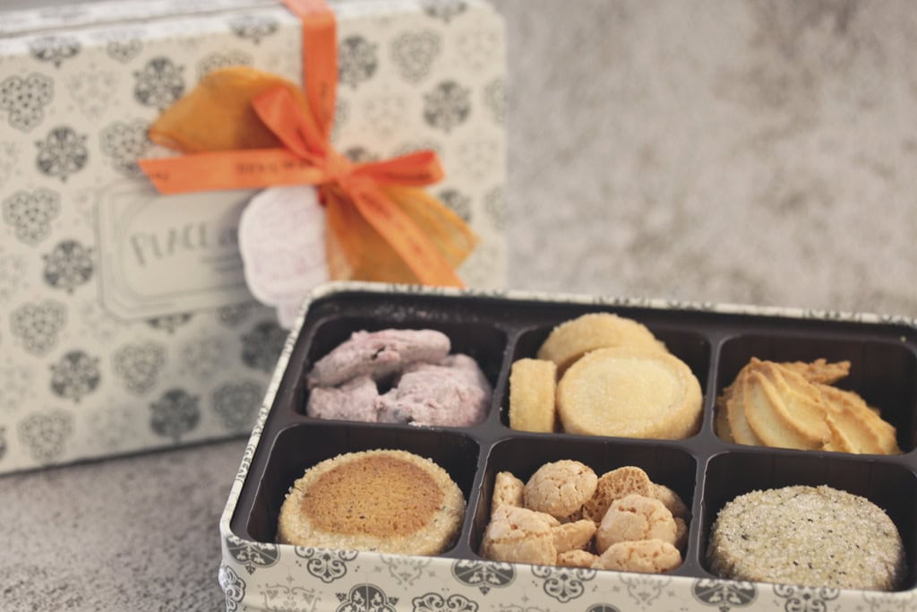 フランスの伝統菓子から現代的なスイーツまで取り揃える名古屋の人気パティスリーのクッキー缶。発酵バターやナッツを使って丁寧につくられた6種類の焼き菓子が、宝石のように敷き詰められている。クラシカルなデザインの缶も特別感たっぷり。