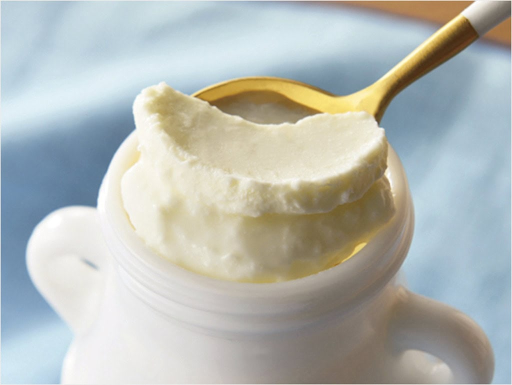 「エイジング」とは、熟成のこと。濃厚なクリームチーズのような層とすっきり爽やかなヨーグルト層を合わせると、絶妙なハーモニーが楽しめる。できたてはミルキーで甘く、次第に熟成して酸味と香りが豊かに変化。かわいい瓶の形も好評だ。