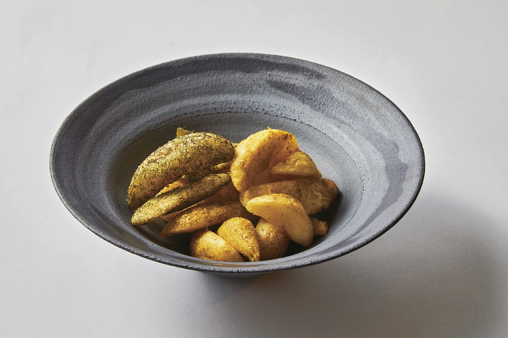 江戸時代から栽培され、将軍や大名に献上された記録も残る下仁田ねぎ。揚げたてのポテトに、甘みあふれる下仁田ねぎのおいしさをたっぷり絡めた、ほかにはない味わい。さっぱりうす塩味に仕上げてあるので、つい手が止まらなくなる。