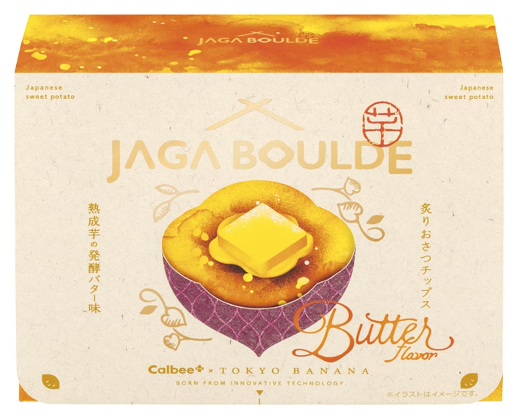 • 【東京都】 JAGA BOULDEの Calbee+×東京ばな奈 炙りおさつチップス 熟成芋の発酵バター味 (4袋入り 1047円)