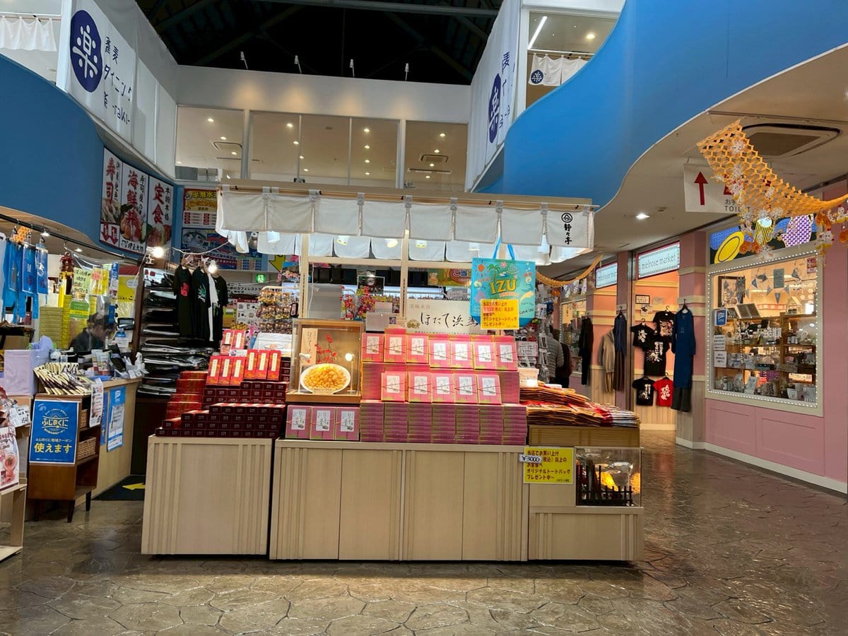 売店には、浜名湖名物として全国的にも知られる「うなぎパイ」が並び、地場海産物の商品も豊富。浜名湖独特の青海苔を使った「浜名湖海苔」もおすすめです。