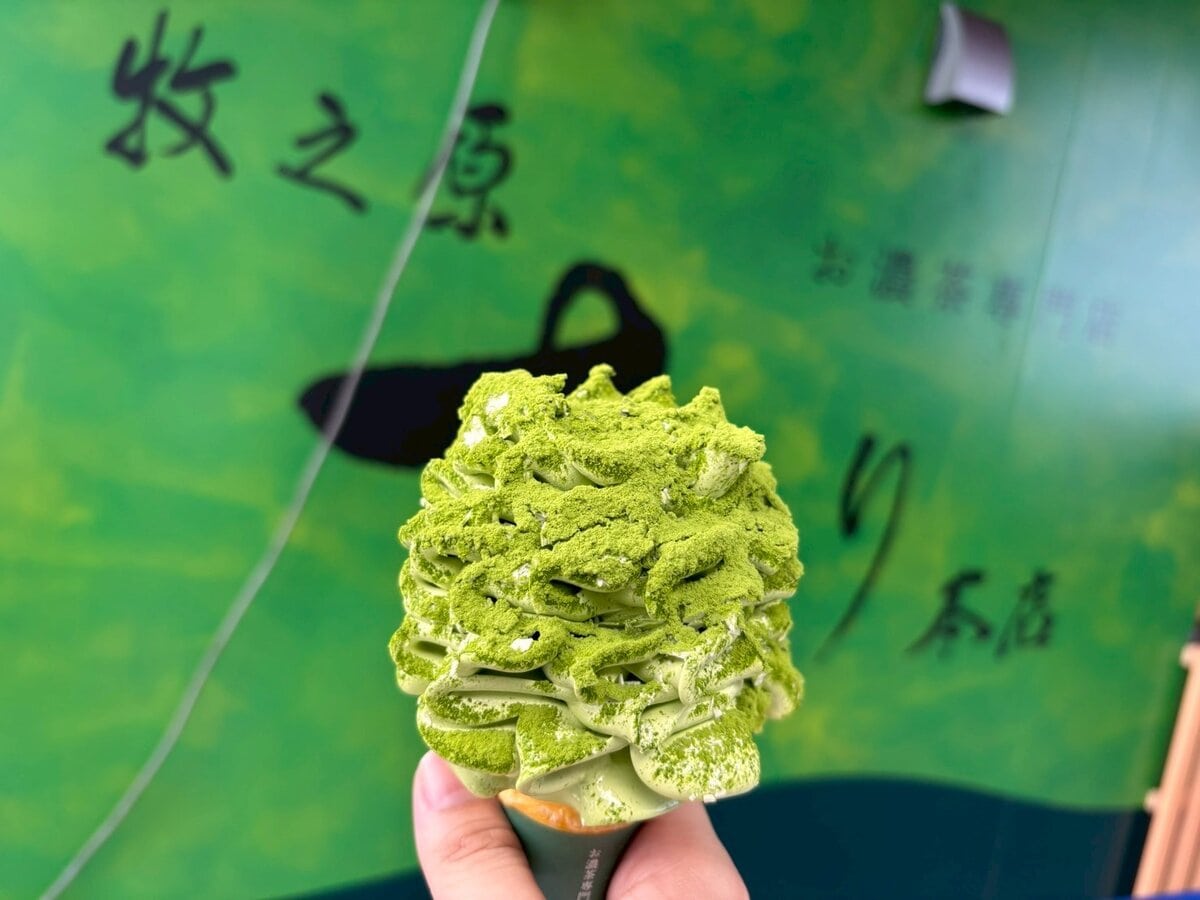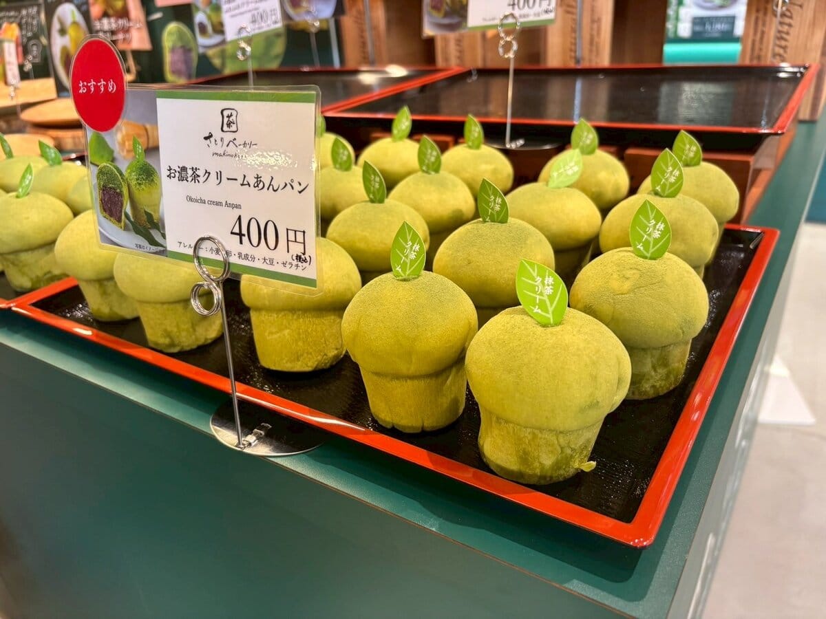 さらに行列必至なのが、牧之原産茶葉を使った抹茶をふんだんに活かしたオリジナルベーカリー。抹茶入りメロンパン、あんことホイップがたっぷり詰まった緑色のあんパン、お茶のクリーム入り生ドーナツなど、ユニークで風味豊かな商品が目白押しです。