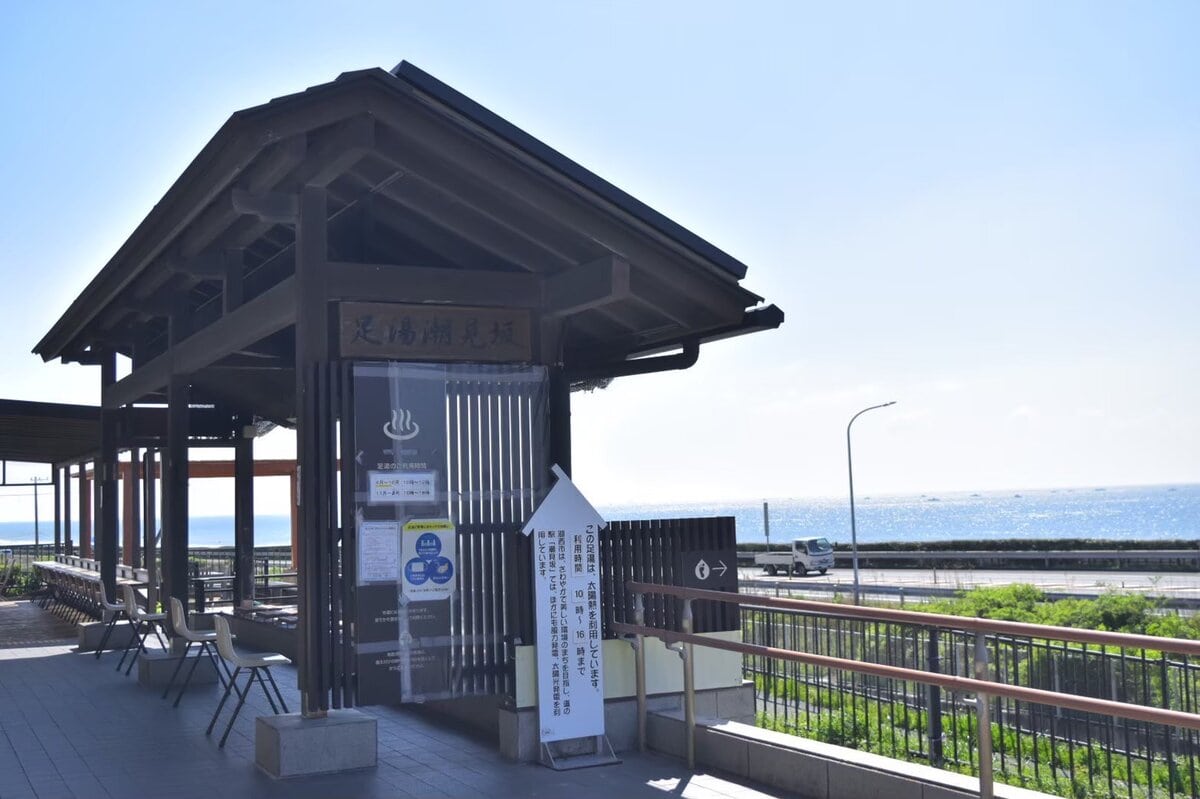 浜名湖の西、遠州灘を望む場所にあるこちらの道の駅。すぐ目の前に広がる大海原を眺めながら足湯に浸かれるのは、思わず長居してしまう魅力です。