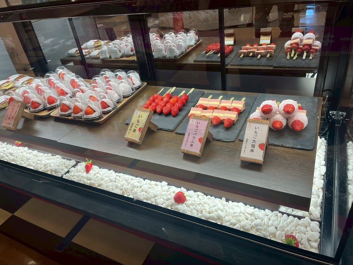 さらに、いちごのナポレオンパイやいちご大福もショーケースに並び、店内のカフェでは、いちごがぎっしり詰まったボンボンパフェや大人気のボンボンベリーソフトも味わえます。女性や子どもにもおすすめしたい一軒です。