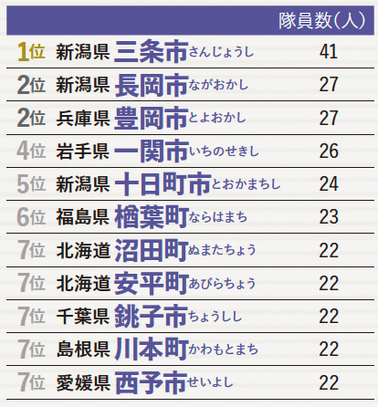 総務省が2009年から開始した地域おこし協力隊は、地域とのかかわりを求める人の受け皿になっている制度です。20代・30代の若い世代が約7割を占めていますが、近年は40代・50代の働き盛り世代、60代のシニア世代も増えてきました。隊員数で1位は41人の新潟県三条市で随時募集中、2位は27名が地域振興などに取り組んでいる新潟県長岡市、3位は任期終了後に約77%が定住している兵庫県豊岡市がランクインしました。