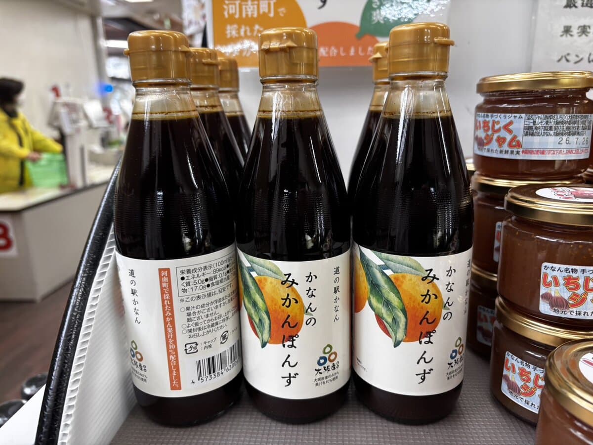 大量に並ぶ旬野菜ももちろんおすすめですが、私たち「拝啓、道の駅から」のイチ押しは「かなんのみかんぽんず」。みかんとポン酢の相性は抜群で、さっぱりとしながらも、みかんのほどよい風味が後味に広がる一本。思わず手に取りたくなる注目の調味料です。