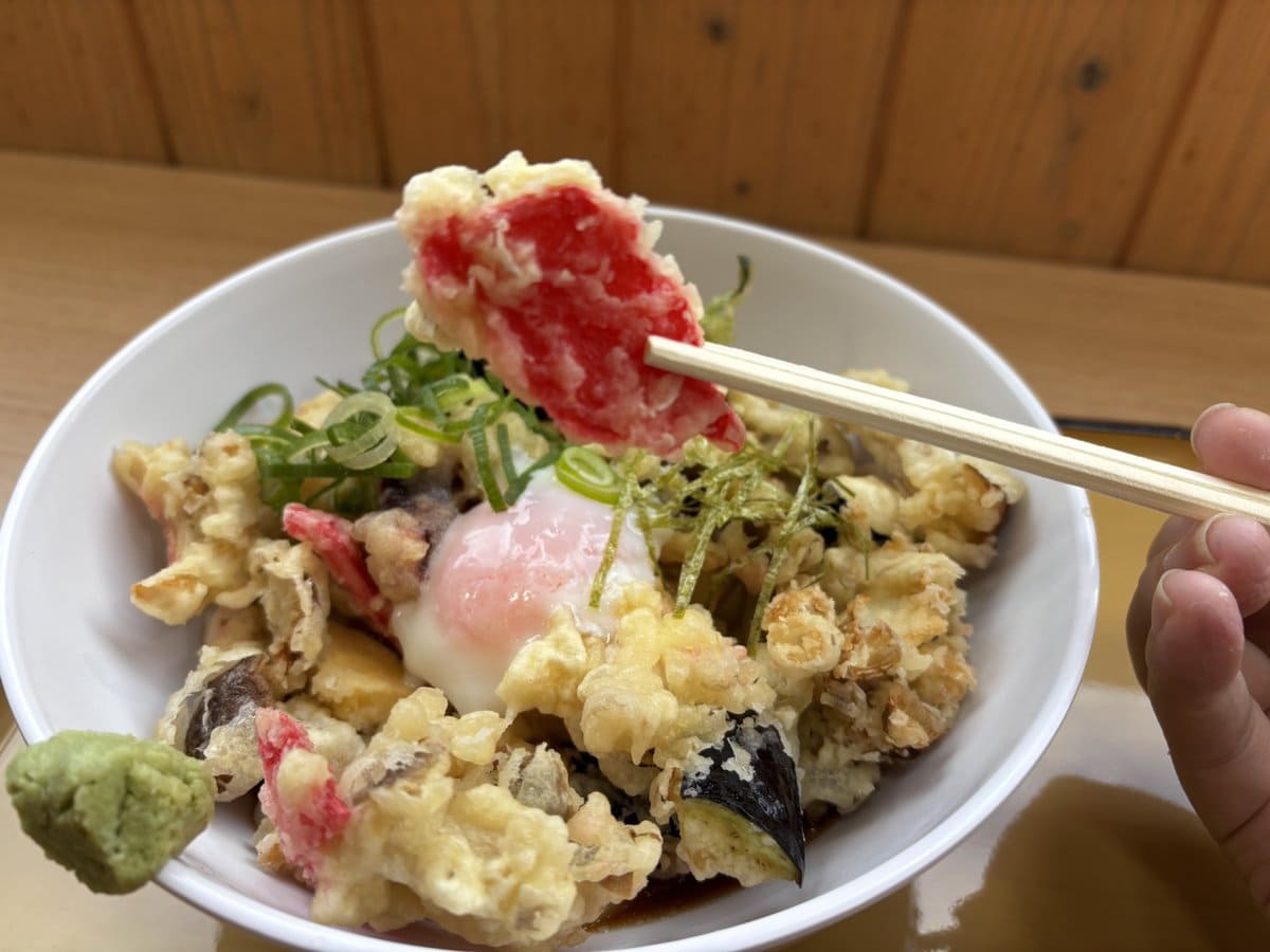 レストランでは、近海で獲れた希少な生しらすを使った「生しらす丼」をはじめ、生しらすと漬けまぐろを組み合わせた「生しらすとまぐろ漬け丼」など、海の幸を存分に味わえます。さらに、紅しょうがの天ぷらが入ったボリューム満点の「山海天ちらし丼」は、大阪らしさを感じられる一品です。