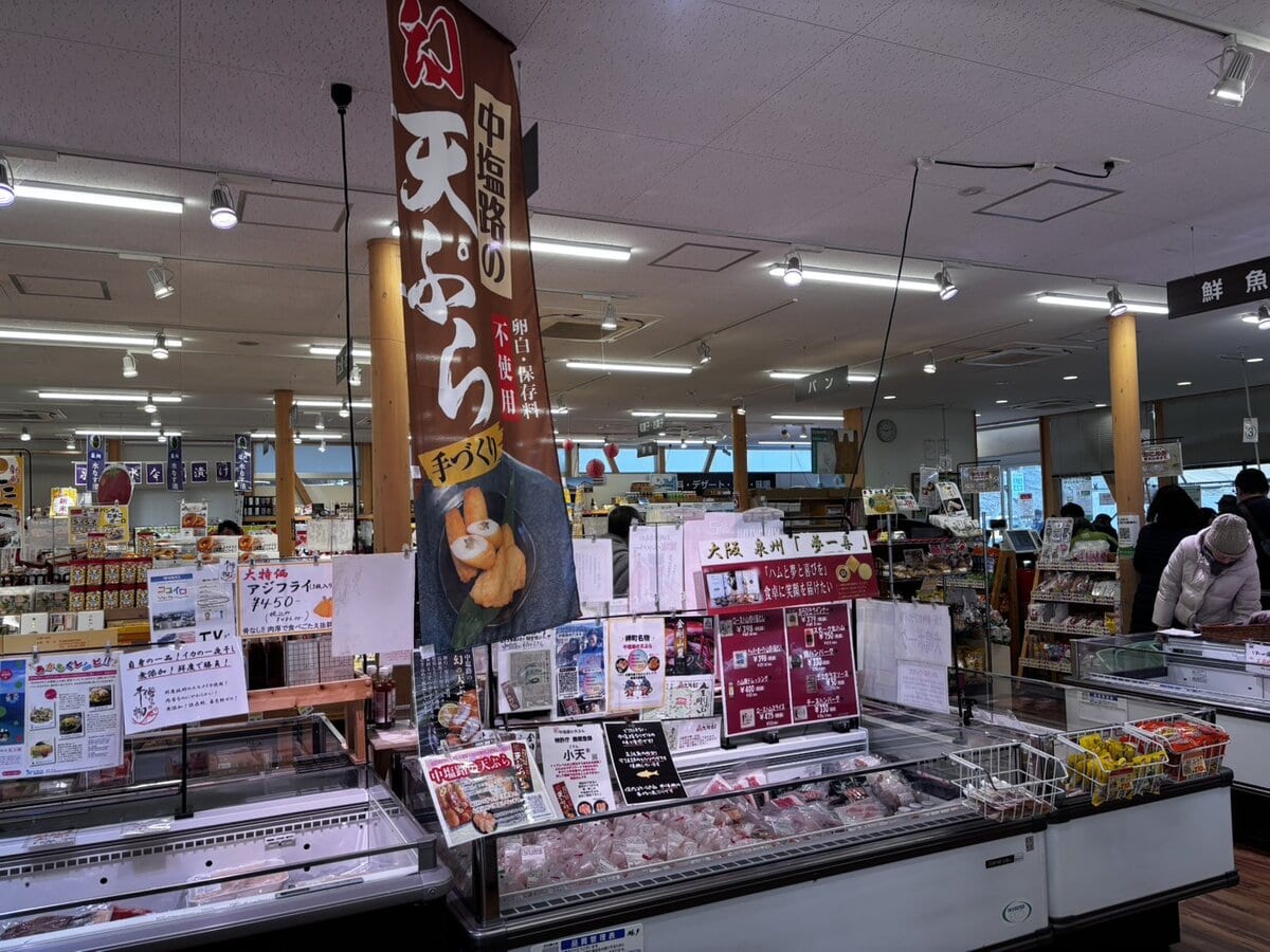 驚きなのは、充実しているのが野菜だけではないこと。敷地内には、岸和田漁協から届く「大阪もん鮮魚」を販売する地域応援館もあり、新鮮な海鮮まで購入できます。