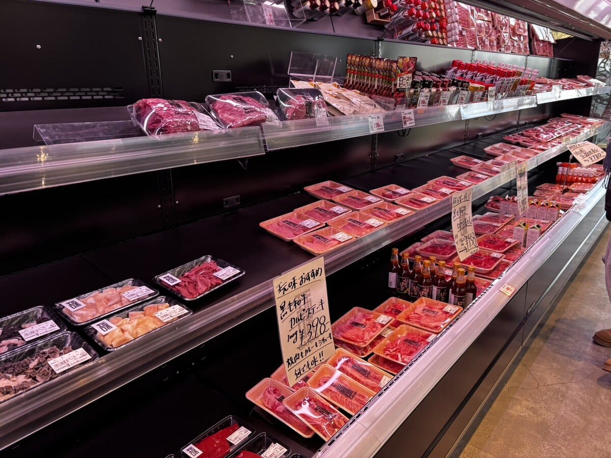 特におすすめなのが、和牛の精肉店「玩味」。店内には高級感のある上質な和牛が並びますが、外のテイクアウト窓口では、その和牛を使ったメンチカツなどをリーズナブルに味わえるのが魅力。“本格派なのに気軽に楽しめる”のが、この道の駅ならではのポイントです。