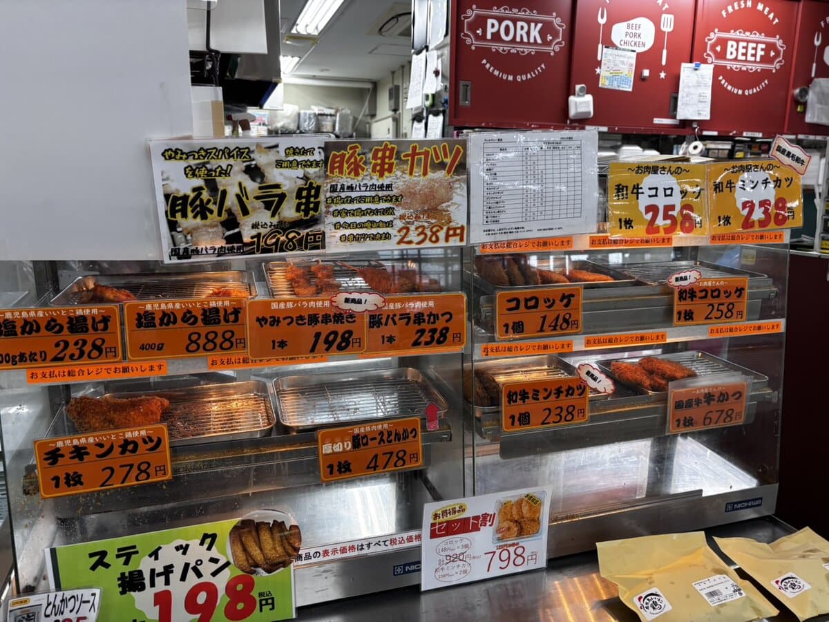 大きな直売所には、新鮮な野菜や果物、人気の豆類が並び、さらに精肉店も入っており、揚げたてのメンチカツやコロッケをその場で味わえるのが魅力です。
